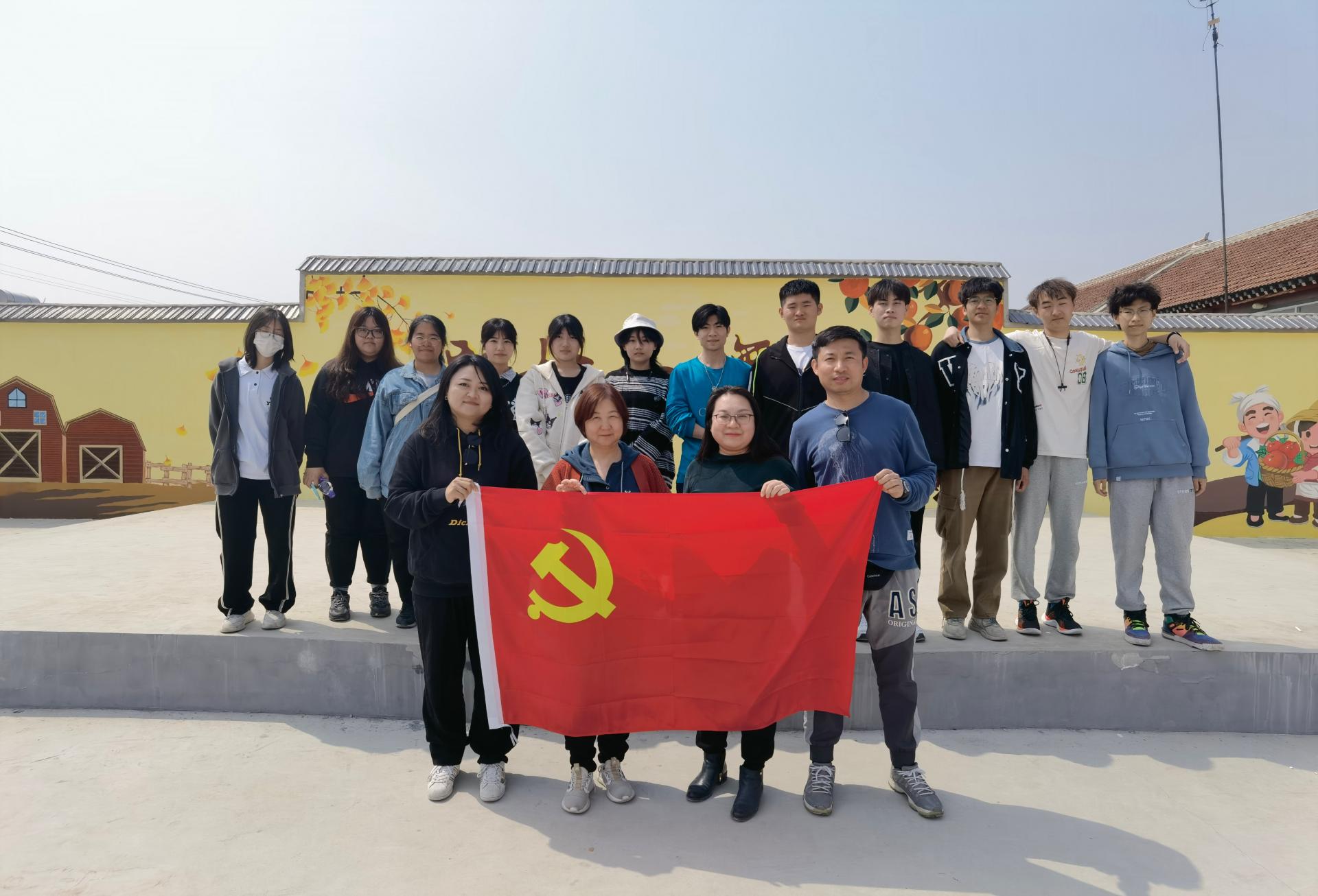 今日艺术教院大众艺术教导部李波传授、大众艺术熏陶部教工党收部刘洋、刘梁、刘东3实党员老师指挥12逻辑学死长远蓟州区停仓镇年夜恩庄,经由过程本身的绘笔画便新乡下扶植的转变,用墙体彩画的体例帮力奇丽村落扶植。