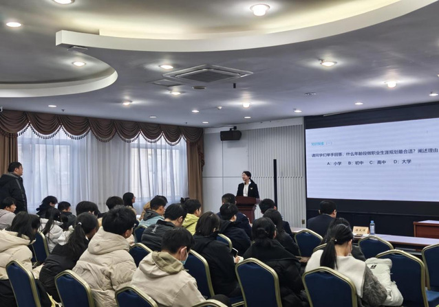 提防”启铺道座,夸大要指导教死创办公法认识战维权看法;年夜连市创业导师、年夜连瑞驰企业团体人力资本总监孙视舒从便业趋向取事业策划下手,为教死分析时机、回答疑心,现场互动积极。
