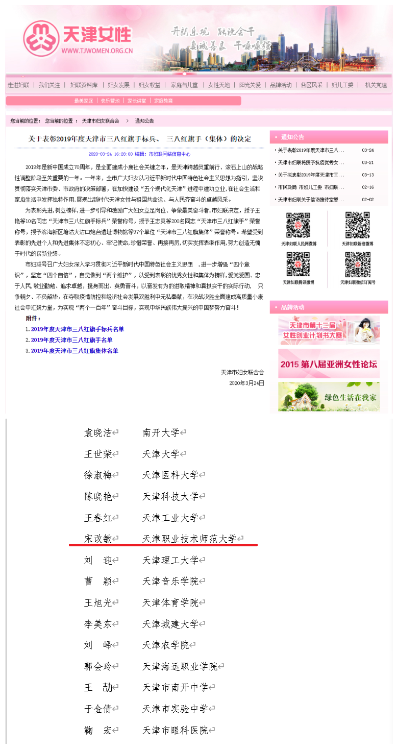 今日天津市妇女团结会公布《对于表扬2019年度天津市38白旗头斥候、 38白旗头(整体)的决意》,球盟会工作教导教院宋改敏传授枯获“2019年度天津市38白旗头”称呼。