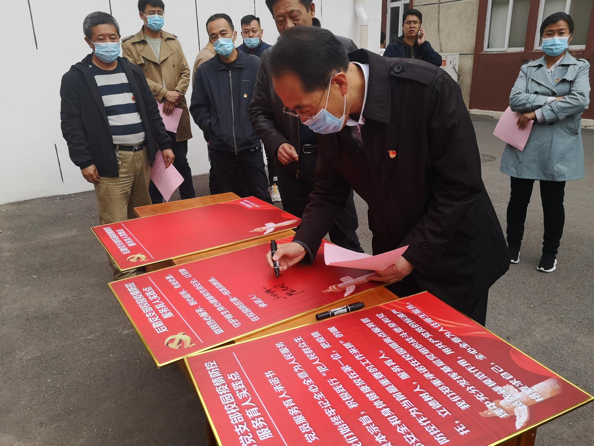 今日“校园疫情防控效劳育人理论面”正式挂牌,校党委常委、副校少旧修邦取后勤党收部齐体党员一路参与挂牌典礼并签订效劳答应。