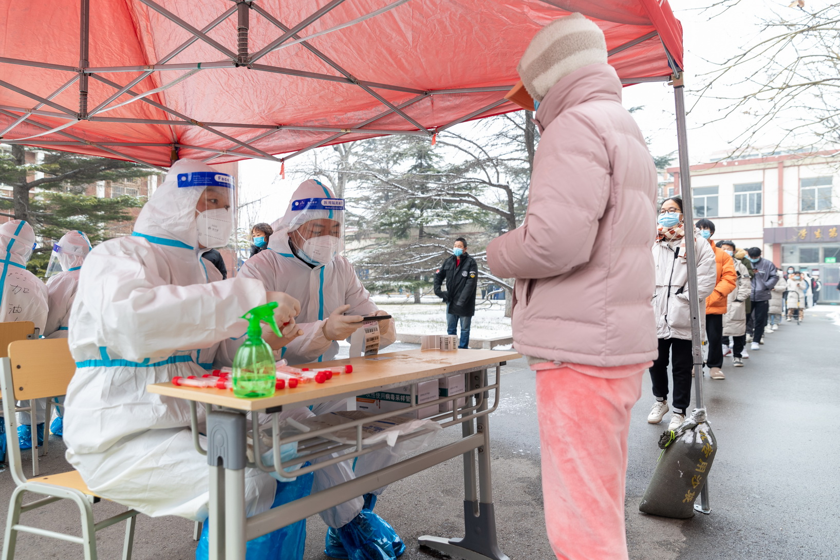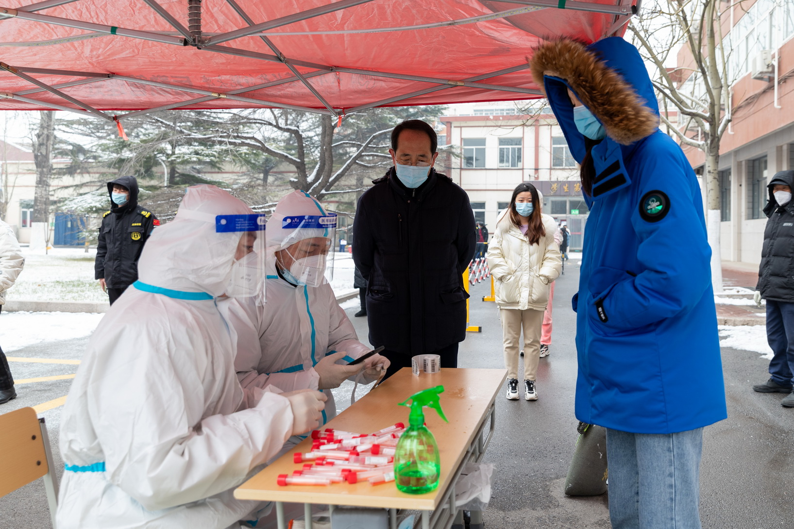 师死职工、中包职员、动工职员等489人顺次采样,本分师年夜校内乱第10轮核酸筛查逆利已毕。