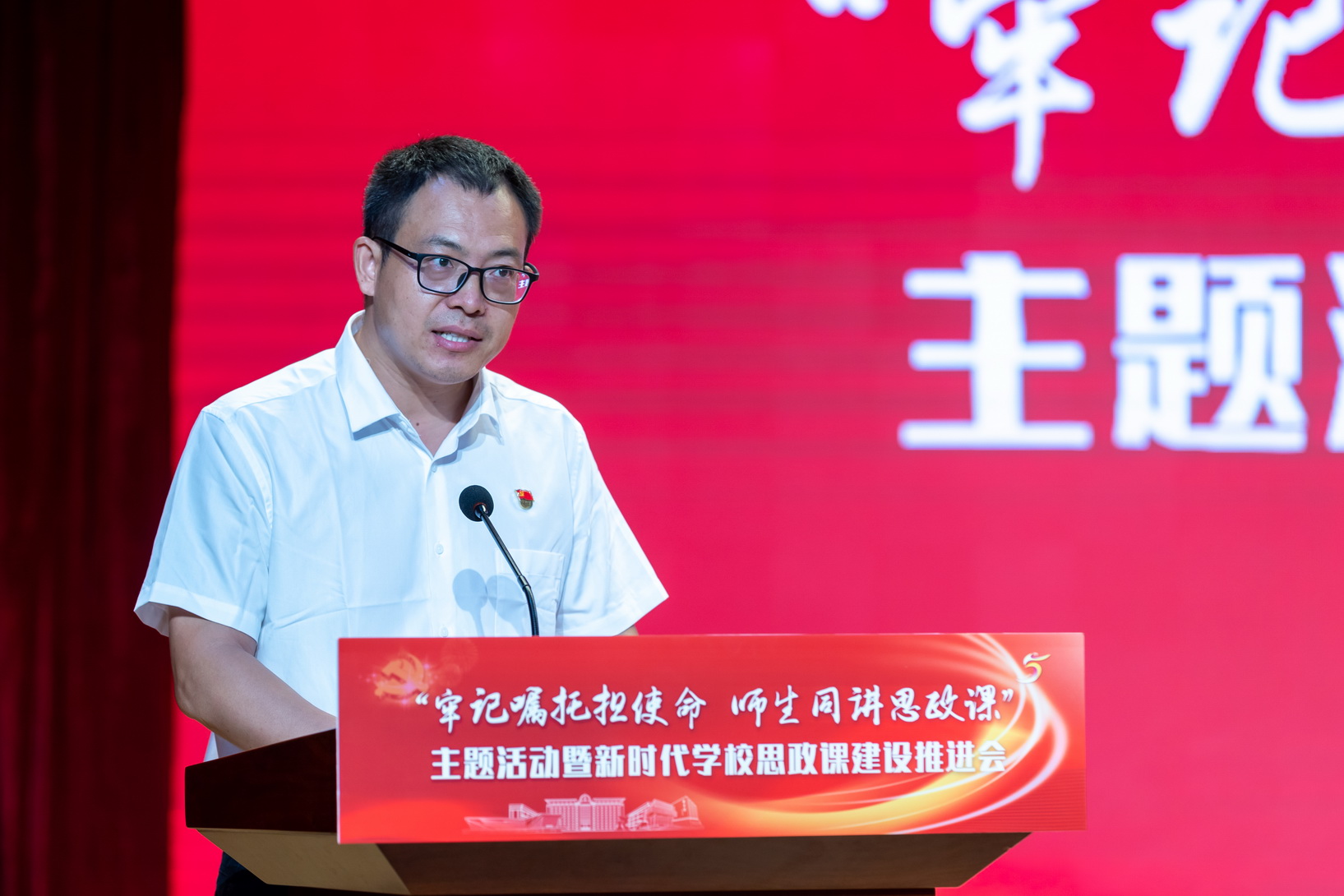 今日校党委正在年夜教死举动焦点谨慎举办“服膺吩咐担任务 师死共道念政课”中央举动暨新期间黉舍念政课扶植促进会。校党委文告弛金刚刚、市教导二委教死到处少杨亮列席聚会并语言,校党委副文牍李靖,校党委常委、副校少李富森列席集会,聚会由李靖主理。