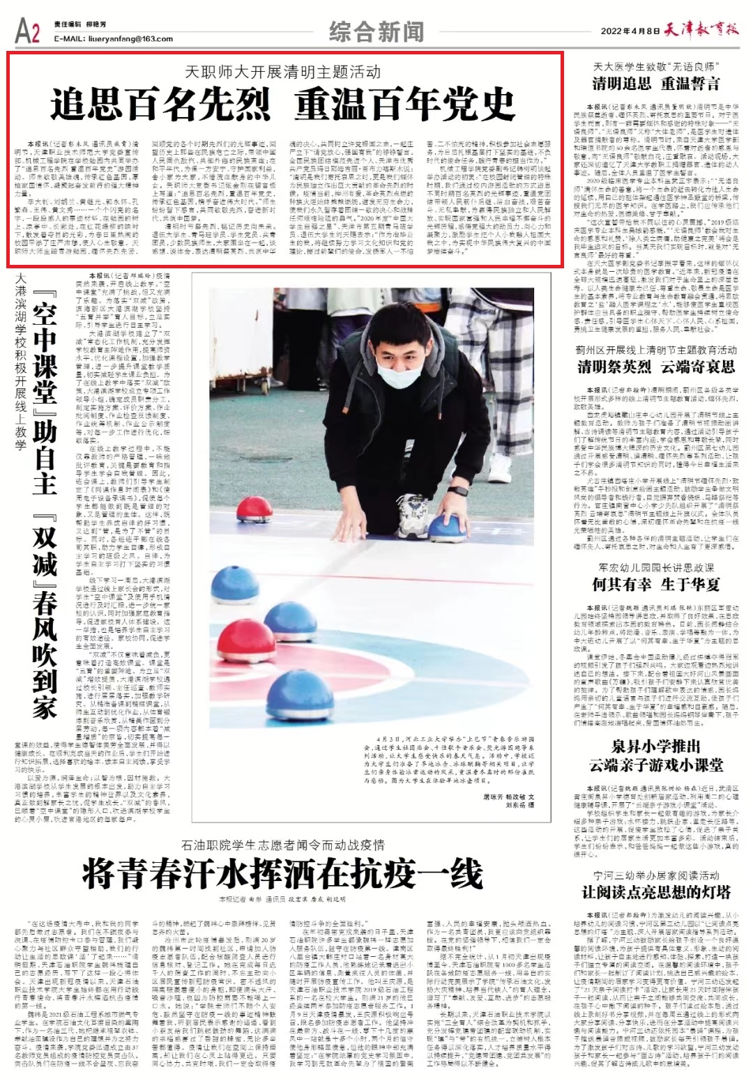 原网讯【通信员 旧亮】4月8日《天津教导报》刊收报导《本分师年夜启铺清朗焦点举动 追念百实先烈 沉暖百年党史》,报导黉舍清朗节举行中央游园举动。