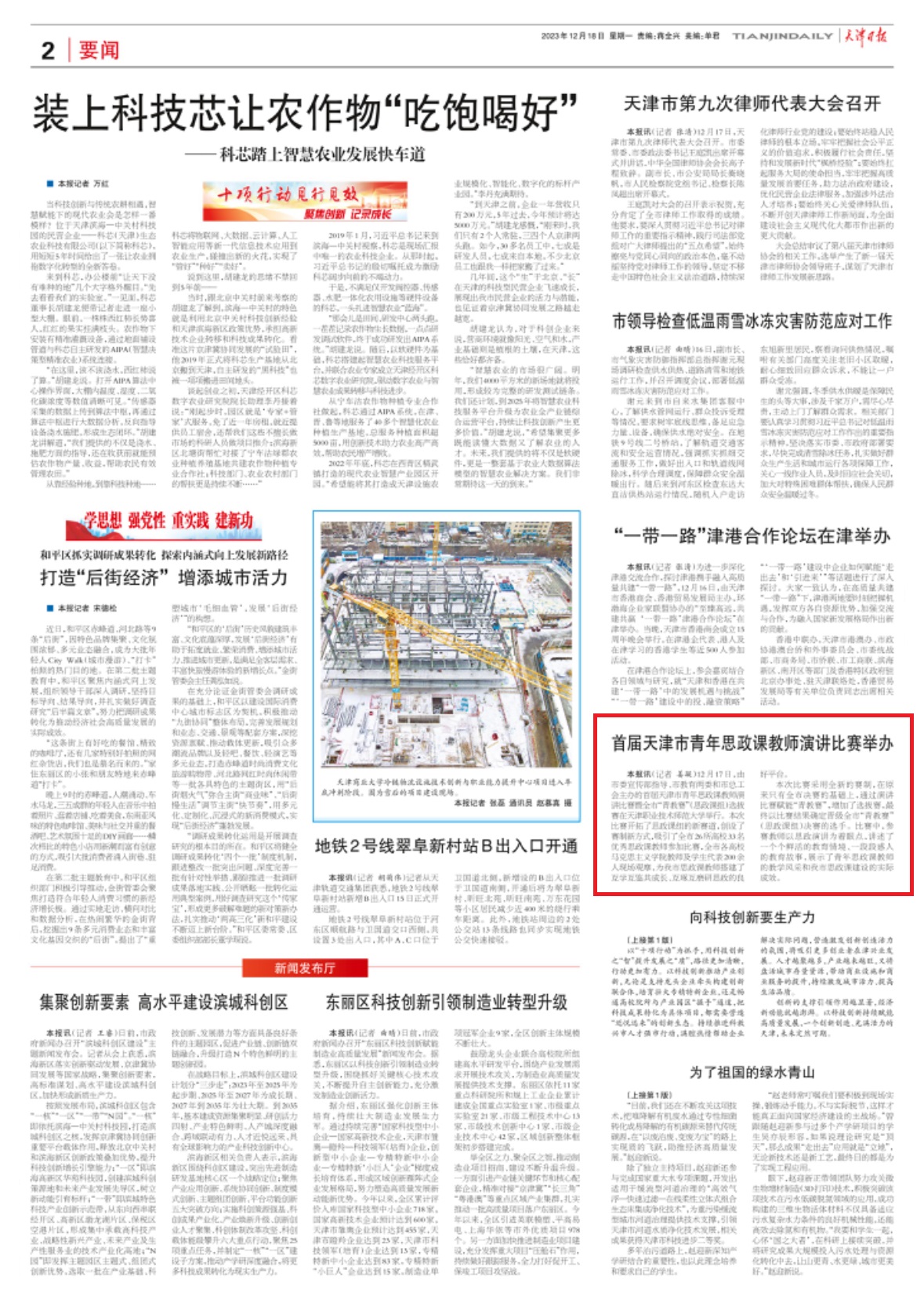 今日《天津日报》报导尾届天